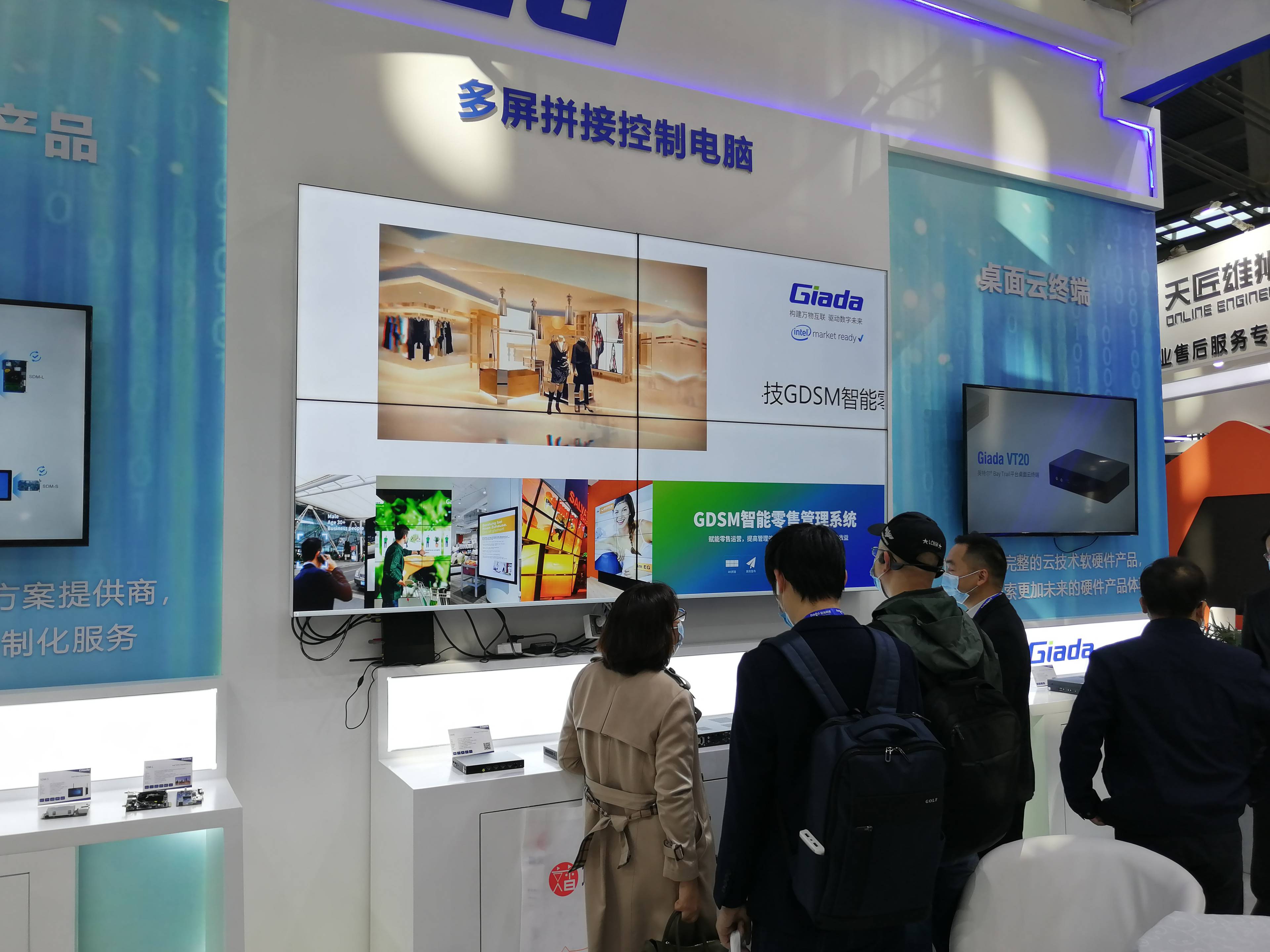 紧邻ARM架构商显产品集的精准推送展示区与零售门店模拟展区,共同组成了本届展会k8.com科技展位的一大精彩设计。场景展现了GDSM智能零售管理系统在零售门店场景下的展示效果,顶部的数字标牌由GDSM系统推送内容,模拟搭建了针对人流动线的广告精准推送形态。