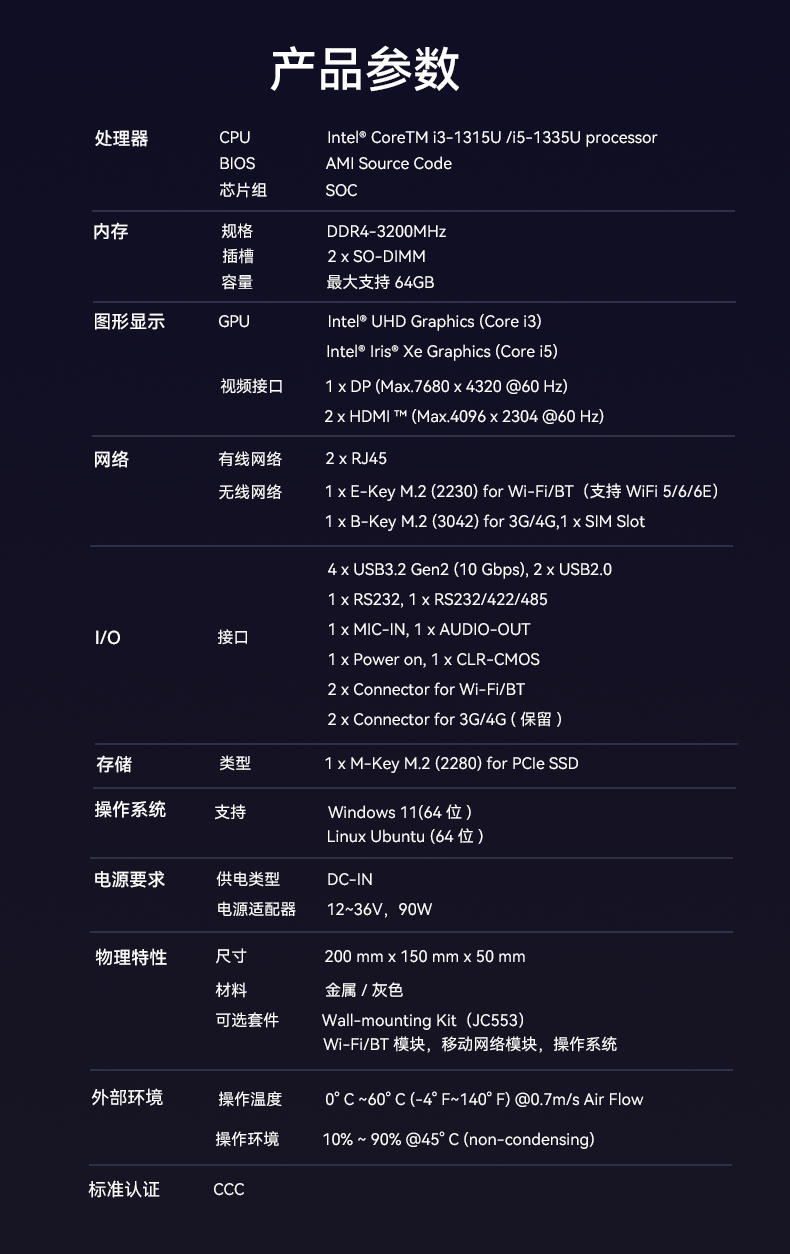 1、k8.comAE613采用密封紧凑设计,紧凑设计可以使设备更易于安装在交通场景中的有限空间内,适用于车载、道路监控、交通信号控制等应用场景,该设计有利于导热更有利于散热,并且机器功耗只有15w,能够降低对电力资源的需求,有利于节能减排,符合绿色环保的发展理念,并且较低的功耗意味着可以延长电池的使用时间,提高设备的续航能力;