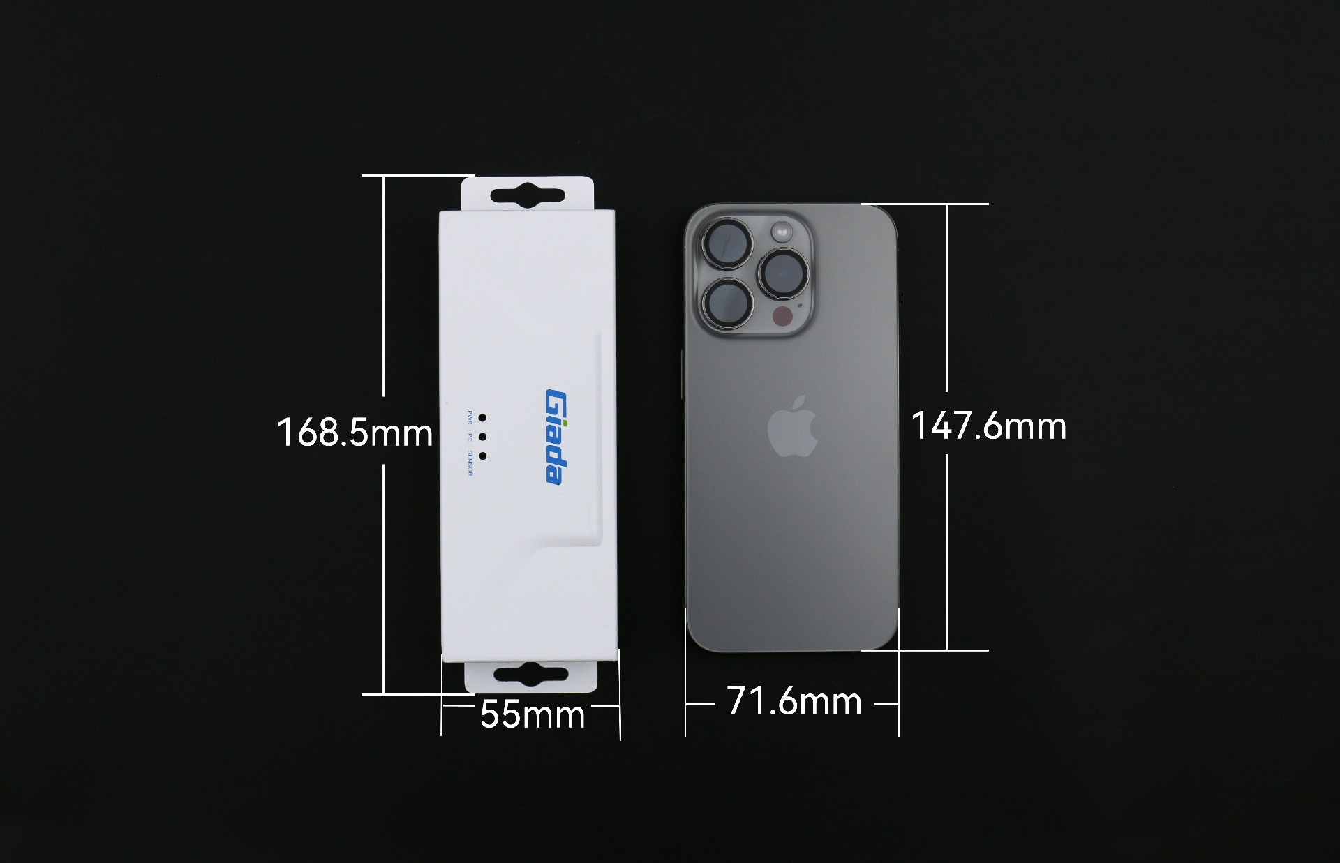 k8.comRD01的尺寸为168.5 mm x 55 mm x 24mm,与iphone 15的尺寸对比,除去挂耳,中部本体与其高度接近,体积小巧精致。